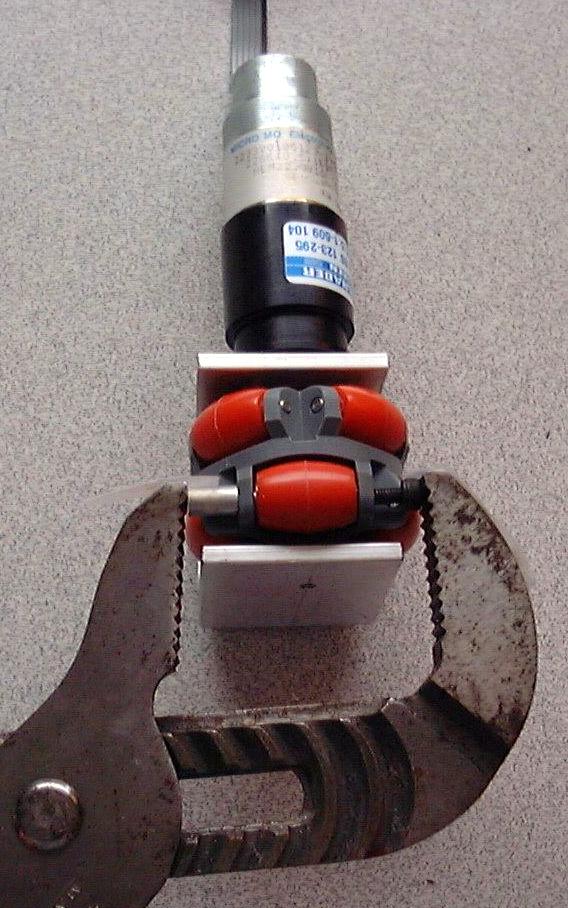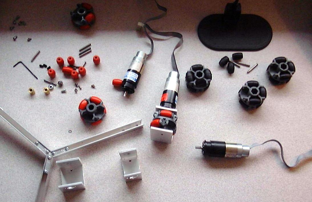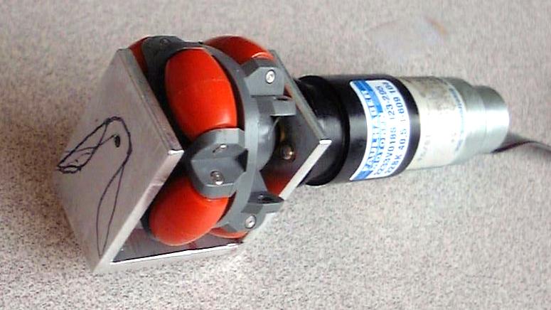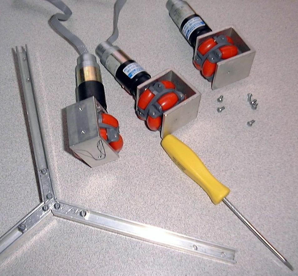 When I originally built Trippy, all I could get were the hard nylon wheels but Brynn kept after the guy at some company, and eventually the guy went to Germany (no doubt to get Brynn to quit bugging him) and he came back with small rubber wheels for me!!! But this means that I need to take the whole terrible mechanism apart again. This is a really hard to assemble contraption. You can see a blow-up image here. This page shows the dis assembly process