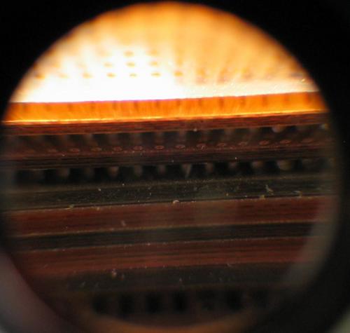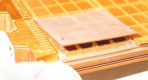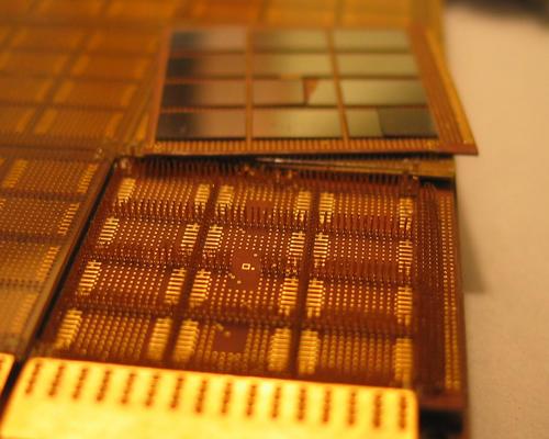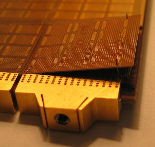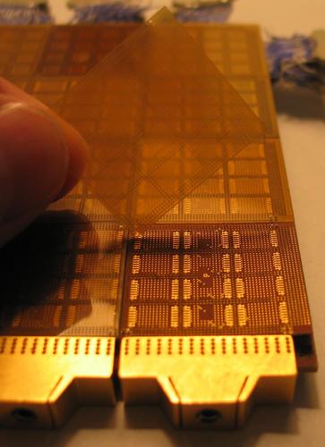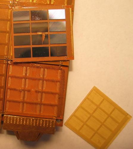 This is the underside of a sub-module showing the upside-down GalliumArsenide dice.
