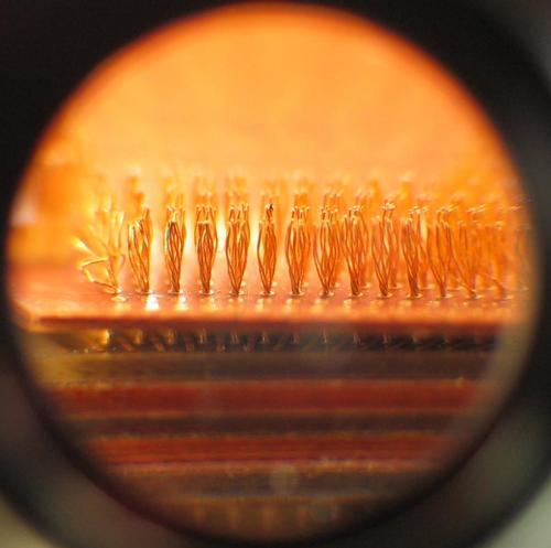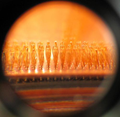 The interconnects are several strands of incredibly fine wire in a sort of spring arrangement